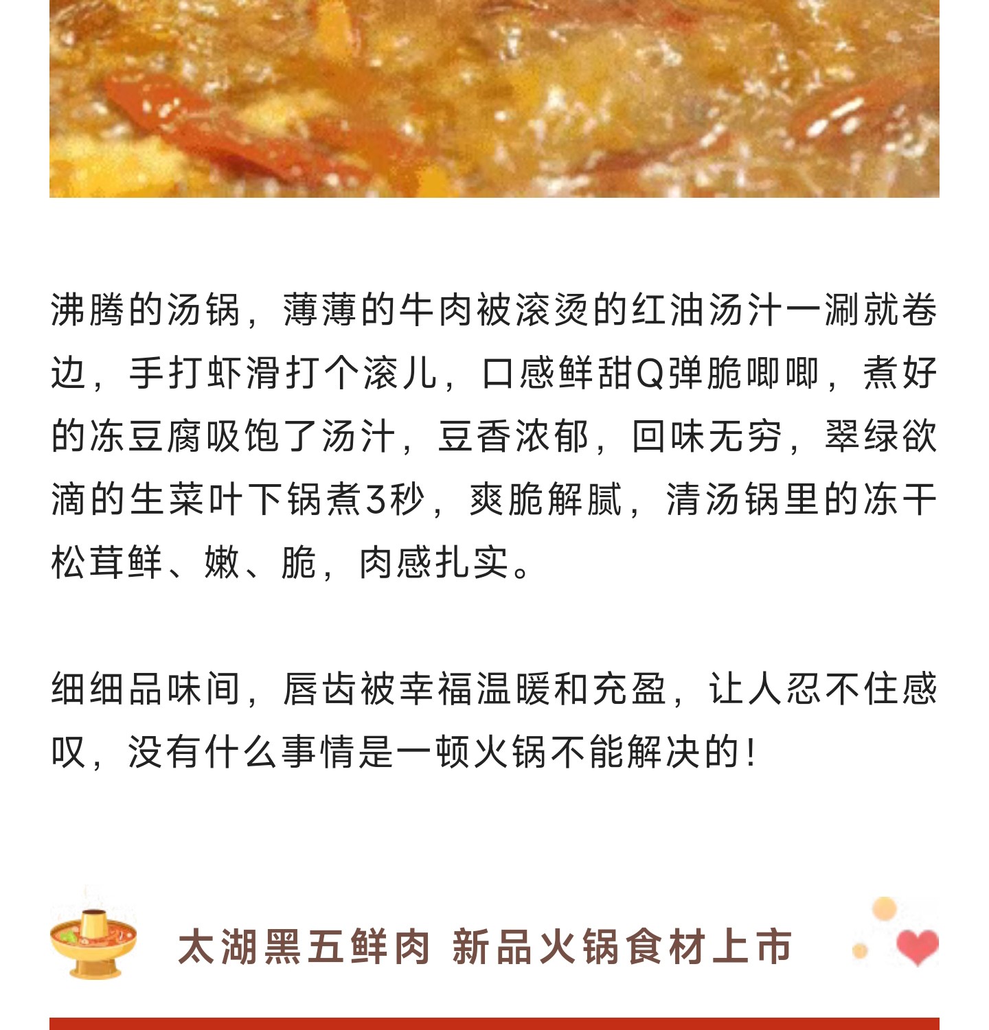 用(yòng)新(xīn)鮮回答(dá)一切,太湖(hú)黑火鍋五鮮肉新(xīn)品上市,暖心暖胃暖冬天!